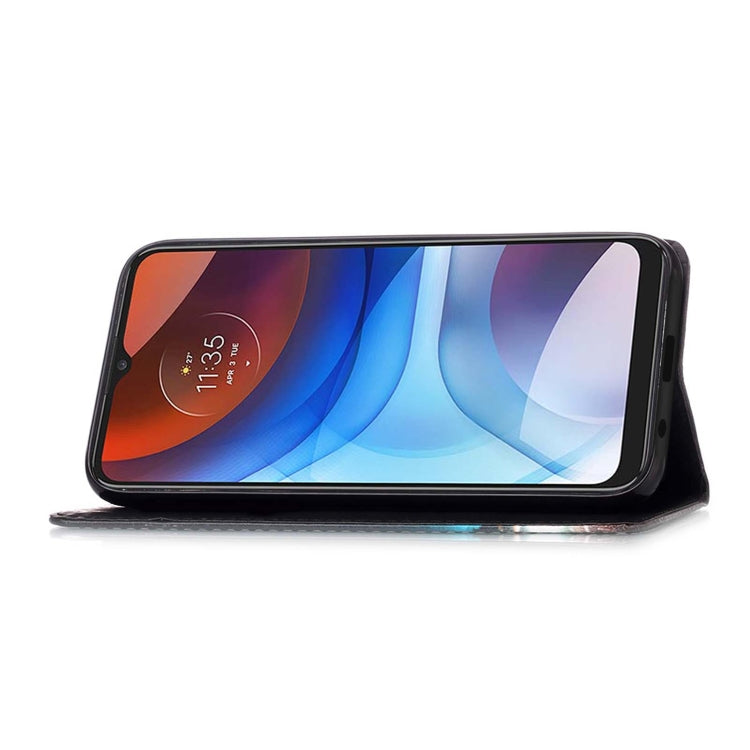 For Motorola Moto E7 Power Colored Drawing Pattern Plain Weave Horizontal Flip Leather Case with Holder & Card Slot & Wallet & Lanyard(Cats And Tigers)