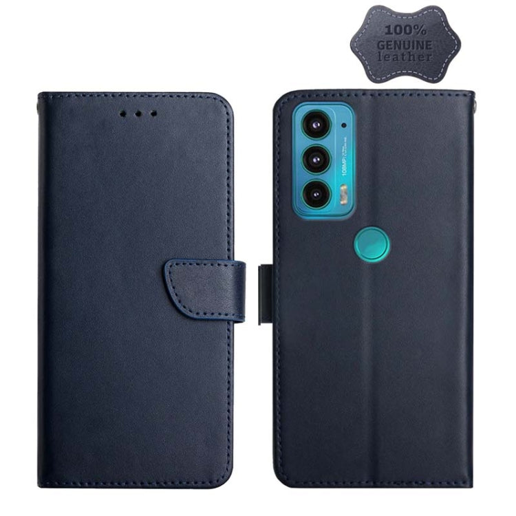 For Motorola Moto Edge 20 Genuine Leather Fingerprint-proof Horizontal Flip Phone Case(Blue)