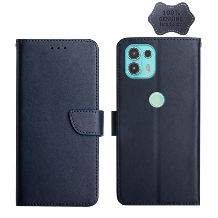 For Motorola Moto Edge 20 Lite Genuine Leather Fingerprint-proof Horizontal Flip Phone Case(Blue)