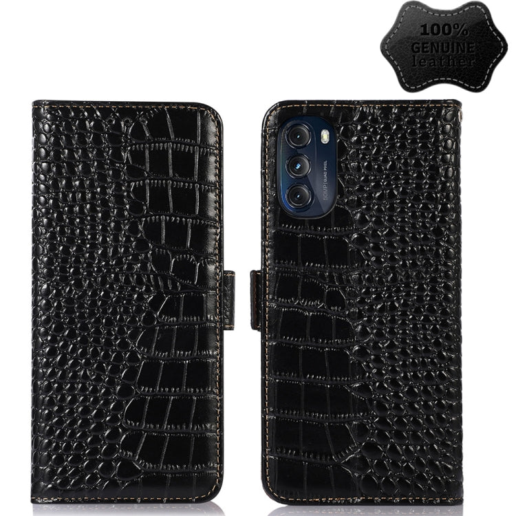 For Motorola Moto G 2022 5G Crocodile Top Layer Cowhide Leather Phone Case(Black)