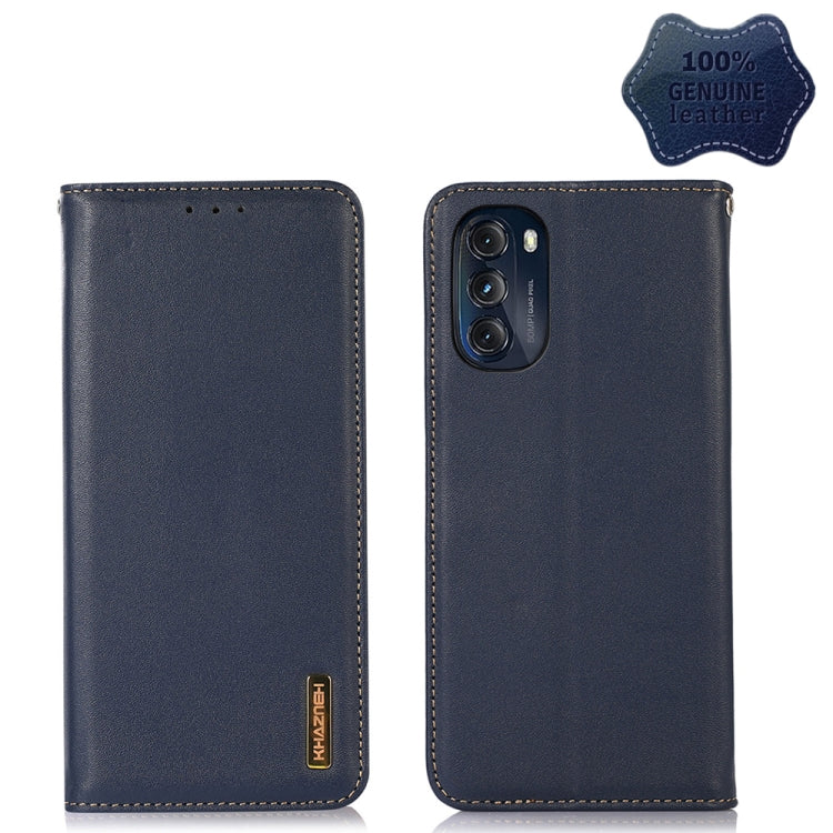 For Motorola Moto G 2022 5G KHAZNEH Nappa Top Layer Cowhide Leather Phone Case(Blue)