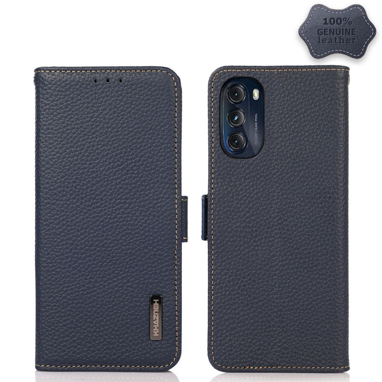 For Motorola Moto G 2022 5G KHAZNEH Side-Magnetic Litchi Genuine Leather RFID Phone Case(Blue)