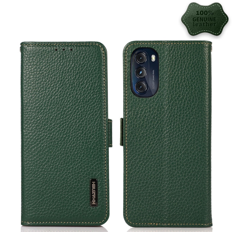 For Motorola Moto G 2022 5G KHAZNEH Side-Magnetic Litchi Genuine Leather RFID Phone Case(Green)