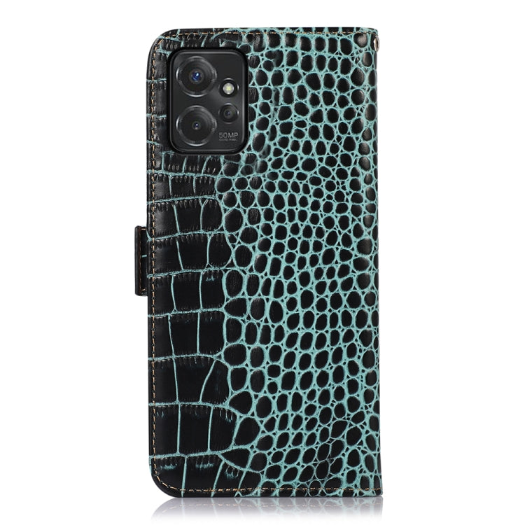 For Motorola Moto G Power 2023 Crocodile Top Layer Cowhide Leather Phone Case(Green)
