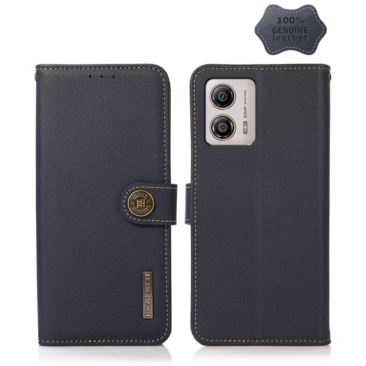 For Motorola Moto G13 / G23 / G53 5G KHAZNEH Custer Texture RFID Genuine Leather Phone Case(Blue)