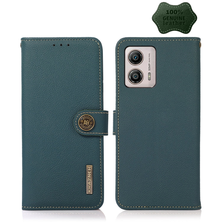 For Motorola Moto G13 / G23 / G53 5G KHAZNEH Custer Texture RFID Genuine Leather Phone Case(Green)