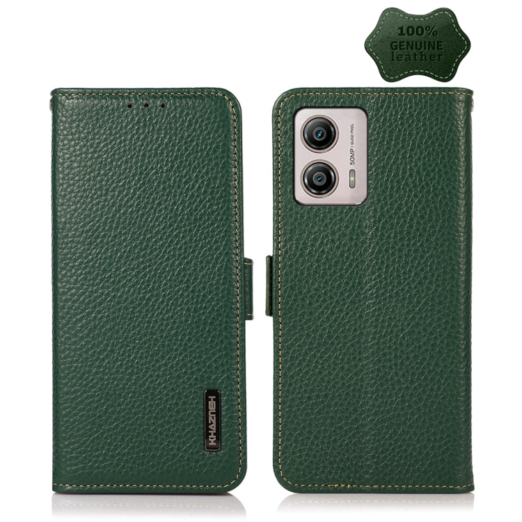 For Motorola Moto G13 / G23 / G53 5G KHAZNEH Side-Magnetic Litchi Genuine Leather RFID Phone Case(Green)