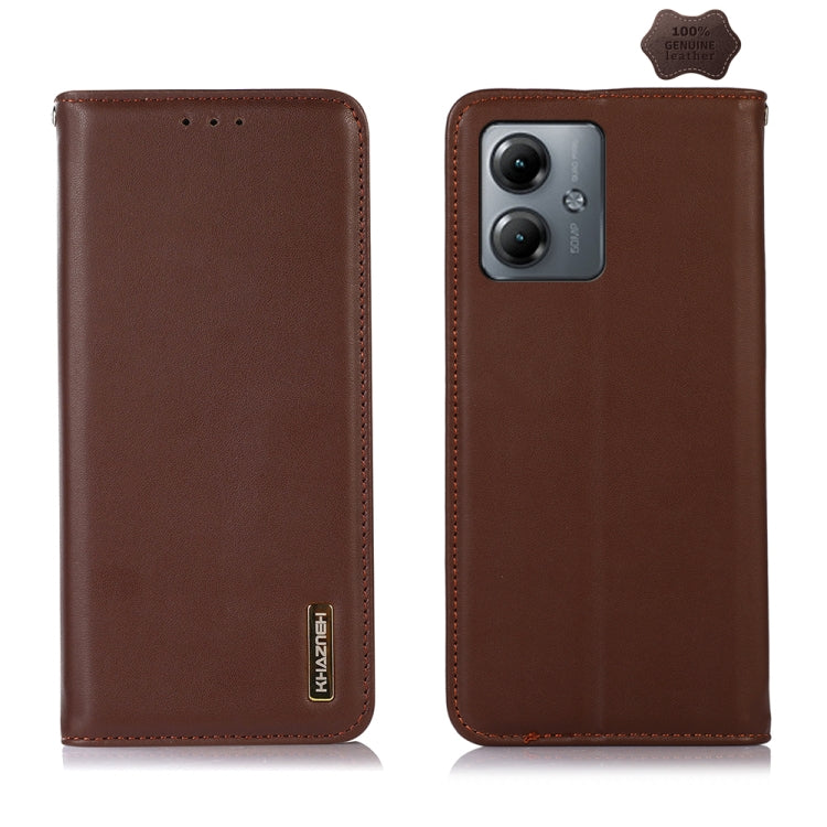 For Motorola Moto G14 4G KHAZNEH Nappa Top Layer Cowhide Leather Phone Case(Brown)