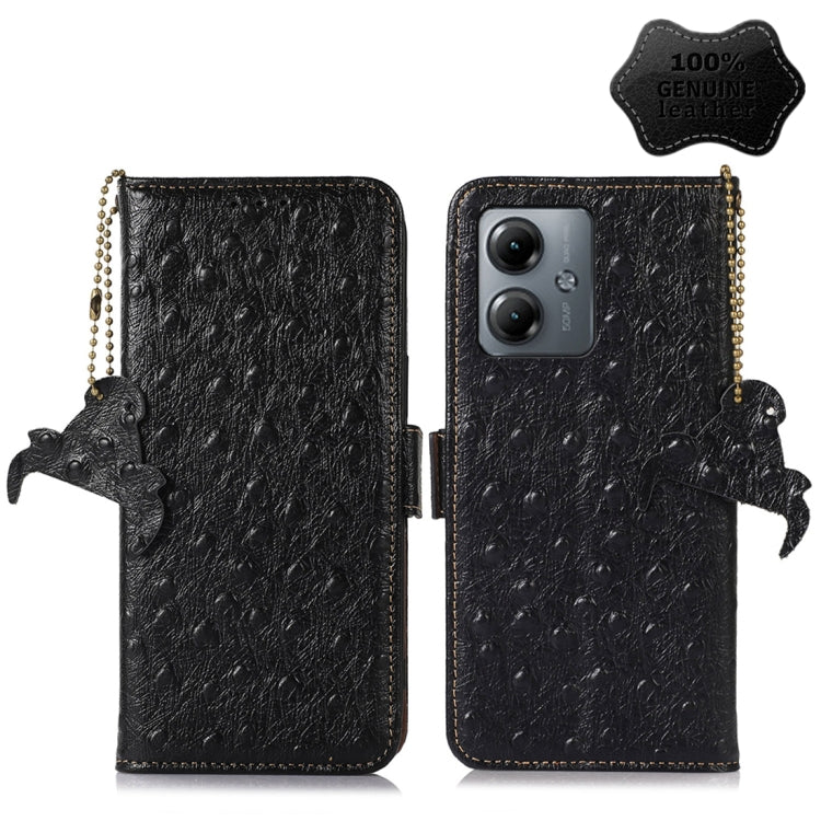 For Motorola Moto G14 4G Ostrich Pattern Genuine Leather RFID Phone Case(Black)