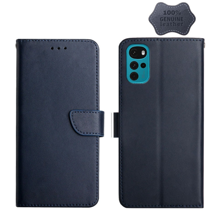 For Motorola Moto G22 Genuine Leather Fingerprint-proof Horizontal Flip Phone Case(Blue)