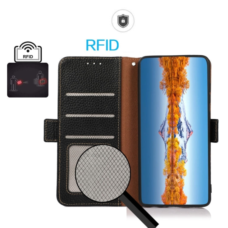 For Motorola Moto G34 KHAZNEH Side-Magnetic Litchi Genuine Leather RFID Phone Case(Black)