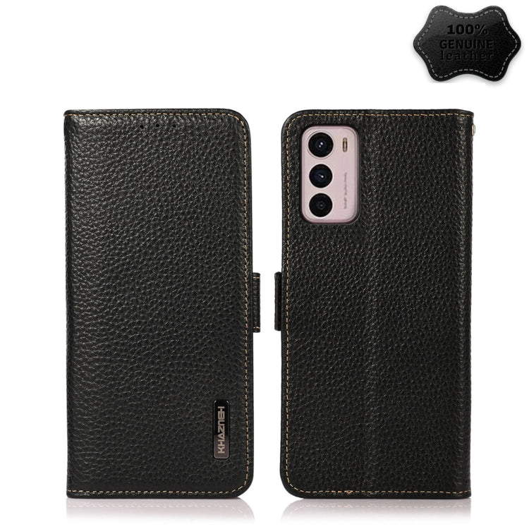 For Motorola Moto G42 KHAZNEH Side-Magnetic Litchi Genuine Leather RFID Phone Case(Black)