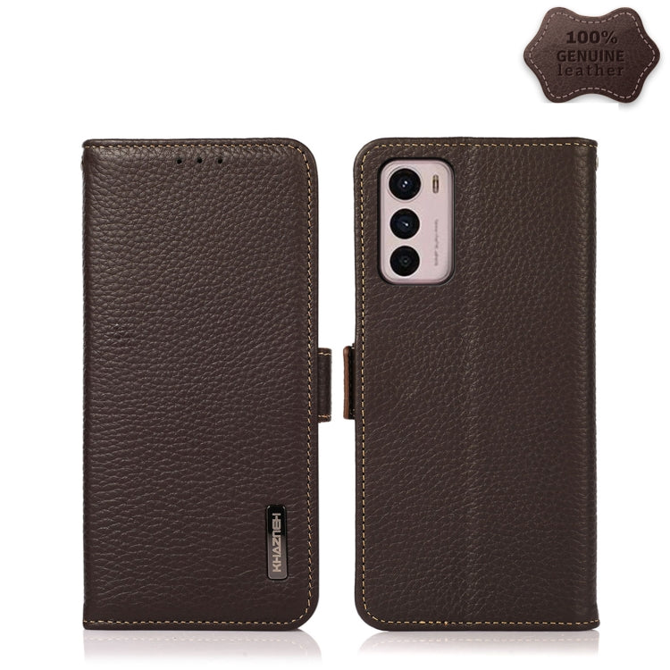 For Motorola Moto G42 KHAZNEH Side-Magnetic Litchi Genuine Leather RFID Phone Case(Brown)