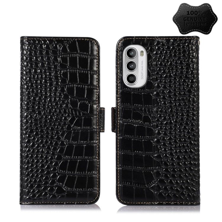 For Motorola Moto G52 4G Crocodile Top Layer Cowhide Leather Phone Case(Black)