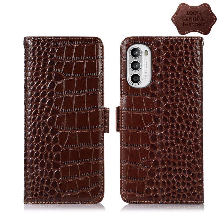 For Motorola Moto G52 4G Crocodile Top Layer Cowhide Leather Phone Case(Brown)