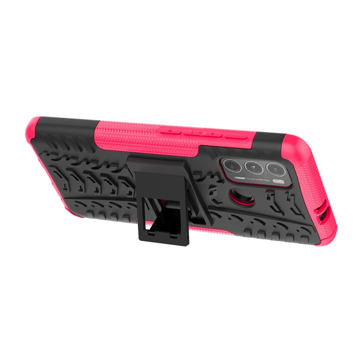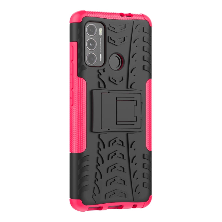 For Motorola Moto G60 Tire Texture Shockproof TPU+PC Protective Case with Holder(Pink)