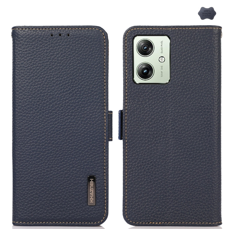 For Motorola Moto G64 5G KHAZNEH Side-Magnetic Litchi Genuine Leather RFID Phone Case(Blue)