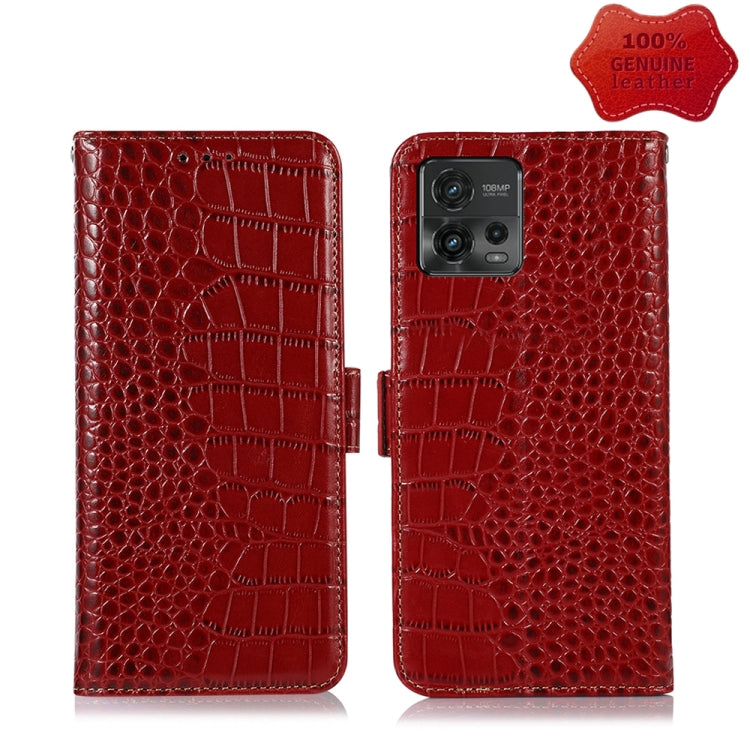 For Motorola Moto G72 Magnetic Crocodile Texture Genuine Leather RFID Phone Case(Red)