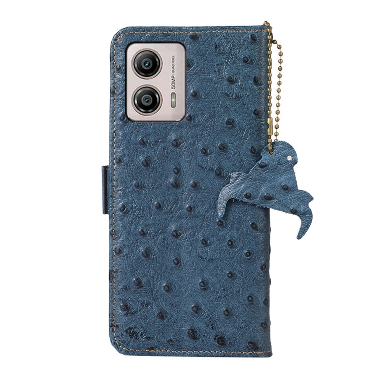 For Motorola Moto G73 5G Ostrich Pattern Genuine Leather RFID Phone Case(Blue)