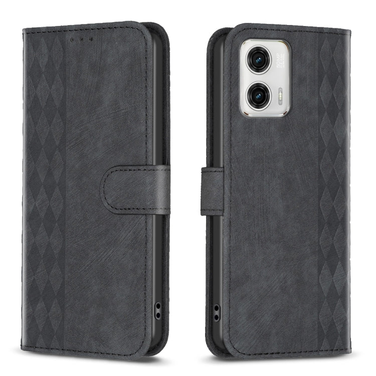For Motorola Moto G73 5G Plaid Embossed Leather Phone Case(Black)