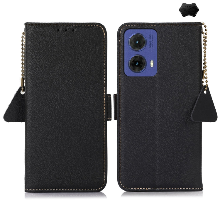 For Motorola Moto G85 Side-Magnetic TJ Genuine Leather RFID Phone Case(Black)