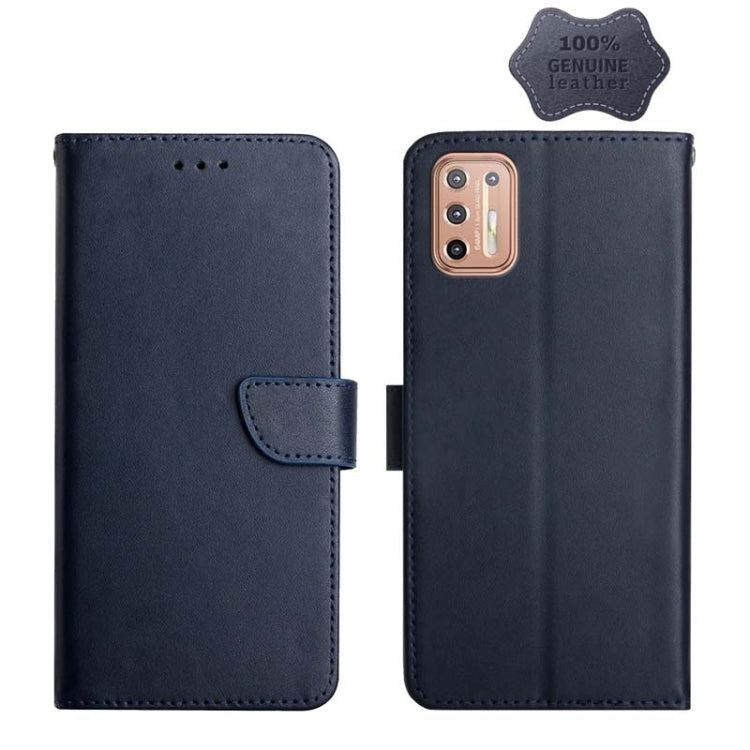 For Motorola Moto G9 Plus Genuine Leather Fingerprint-proof Horizontal Flip Phone Case(Blue)