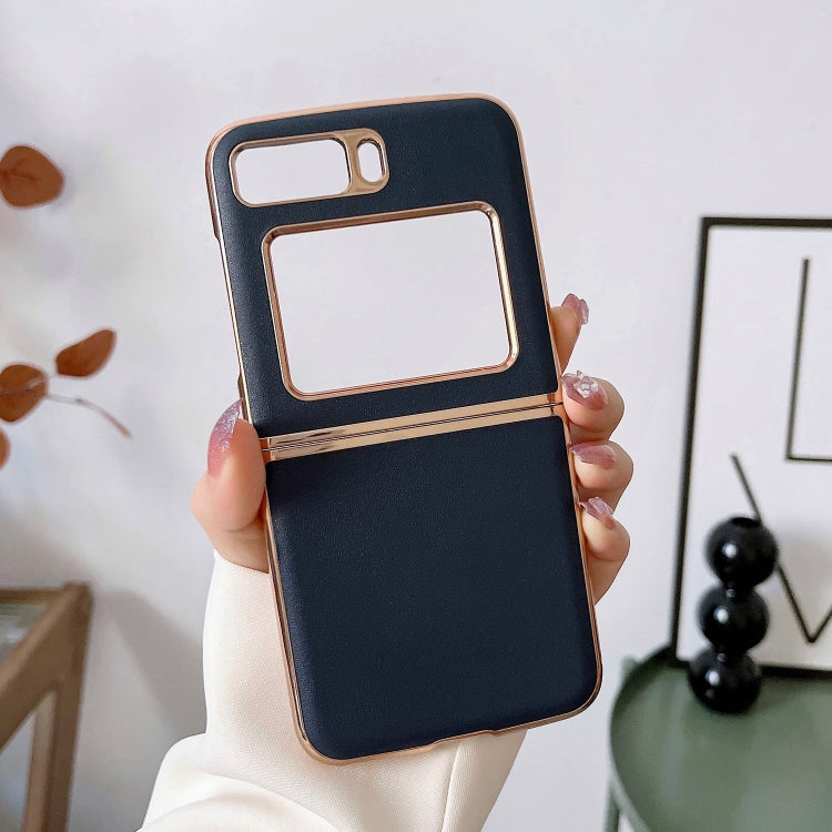 For Motorola Moto Razr 2022 Genuine Leather Xiaoya Series Nano Plating Phone Case(Blue)