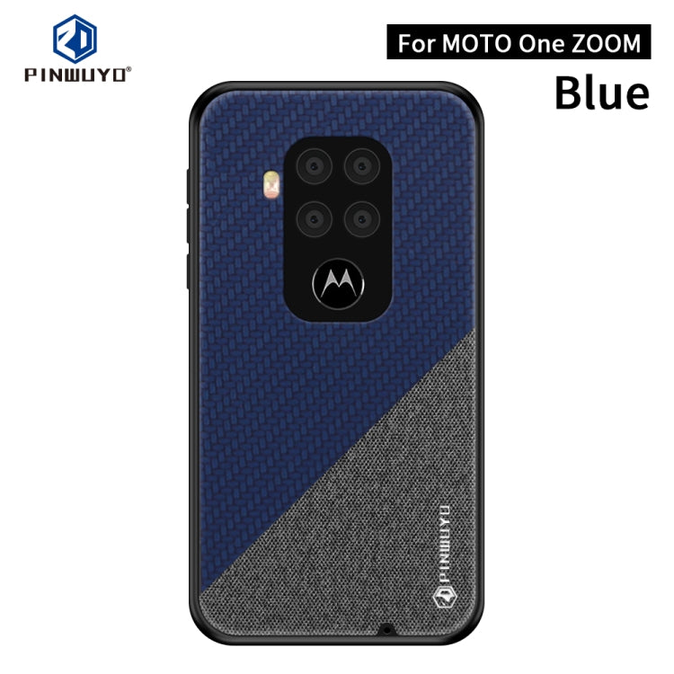 For Motorola One Zoom / One Pro PINWUYO Rong Series Shockproof PC + TPU+ Chemical Fiber Cloth Protective Cover(Blue)
