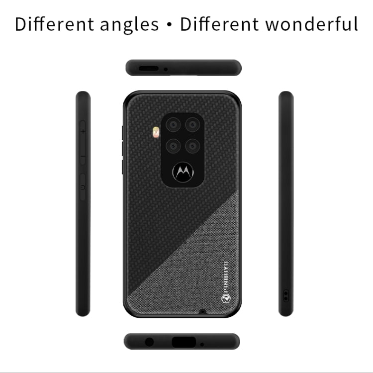 For Motorola One Zoom / One Pro PINWUYO Rong Series Shockproof PC + TPU+ Chemical Fiber Cloth Protective Cover(Brown)