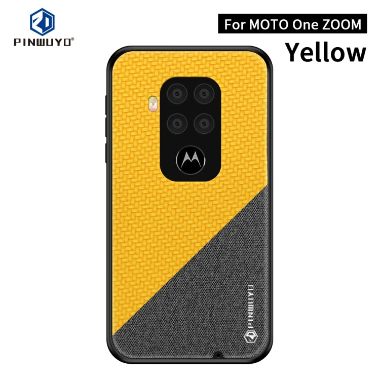 For Motorola One Zoom / One Pro PINWUYO Rong Series Shockproof PC + TPU+ Chemical Fiber Cloth Protective Cover(Yellow)
