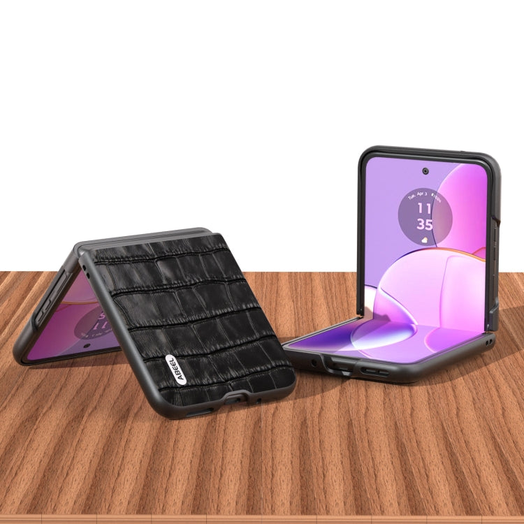For Motorola Razr 40 ABEEL Crocodile Texture Genuine Leather Phone Case(Black)