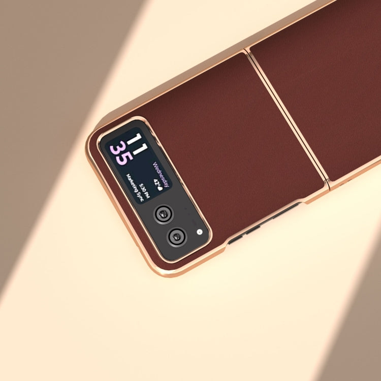 For Motorola Razr 40 Genuine Leather Silk Series Nano Plating Phone Case(Coffee)