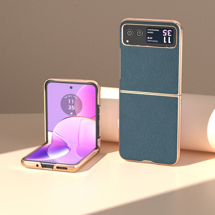For Motorola Razr 40 Nano Electroplating Genuine Leather + PC Litchi Texture Phone Case(Green)