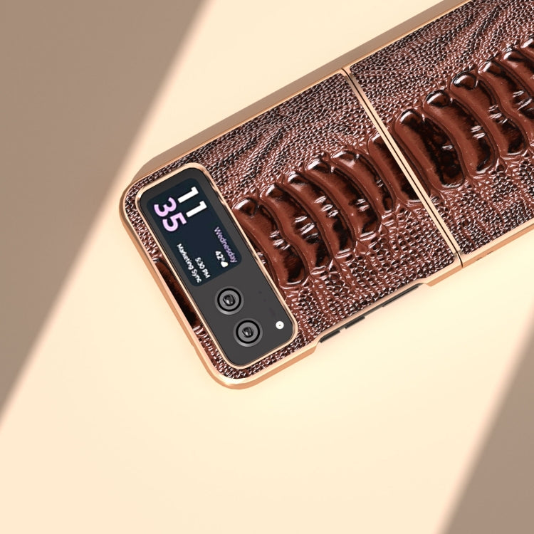For Motorola Razr 40 Nano Plating Genuine Leather Weilai Series Phone Case(Coffee)