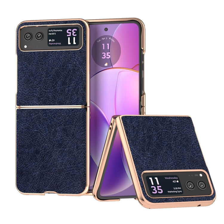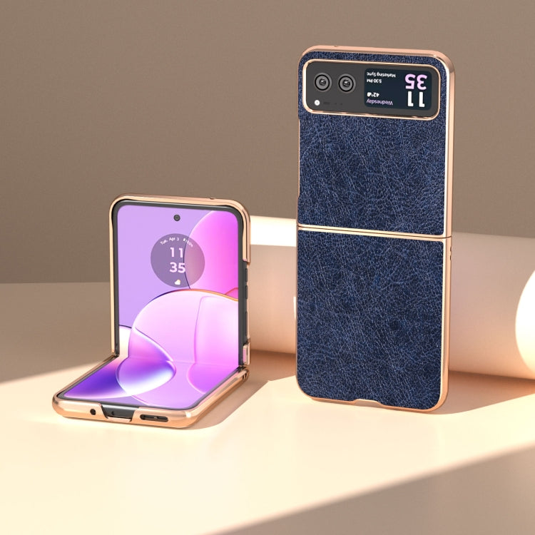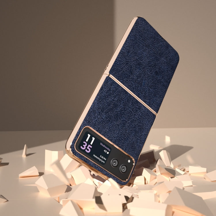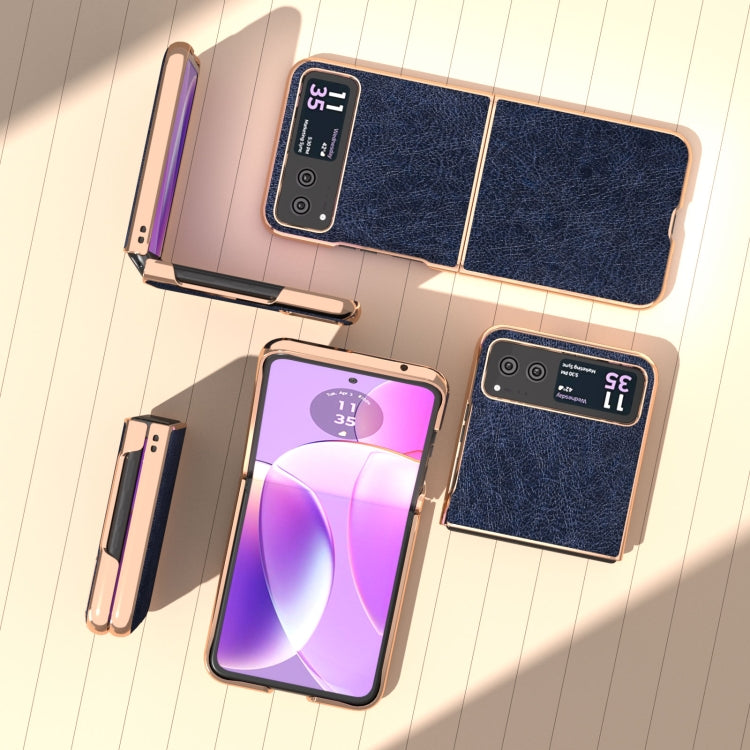 For Motorola Razr 40 Nano Plating Retro Litchi Texture PU Phone Case(Blue)