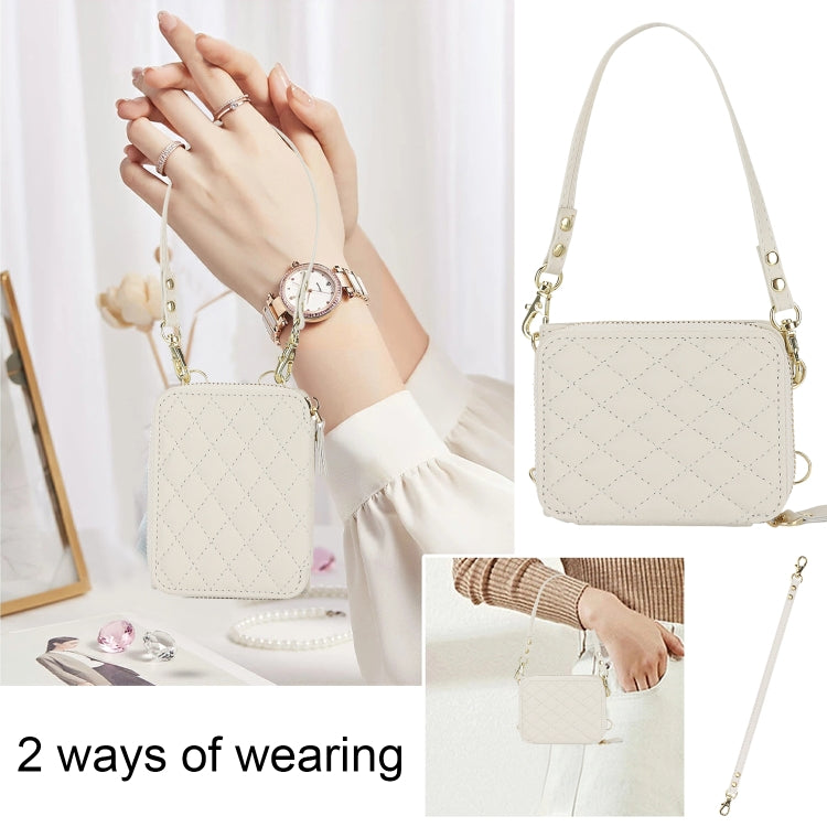 For Motorola Razr 40 Rhombic Texture Card Bag Phone Case with Dual Lanyard(White)
