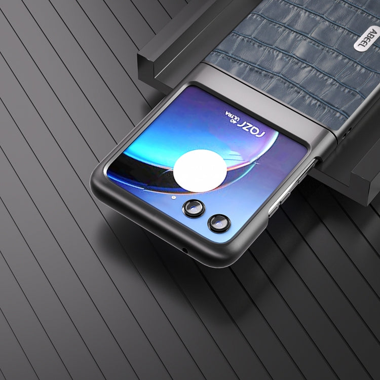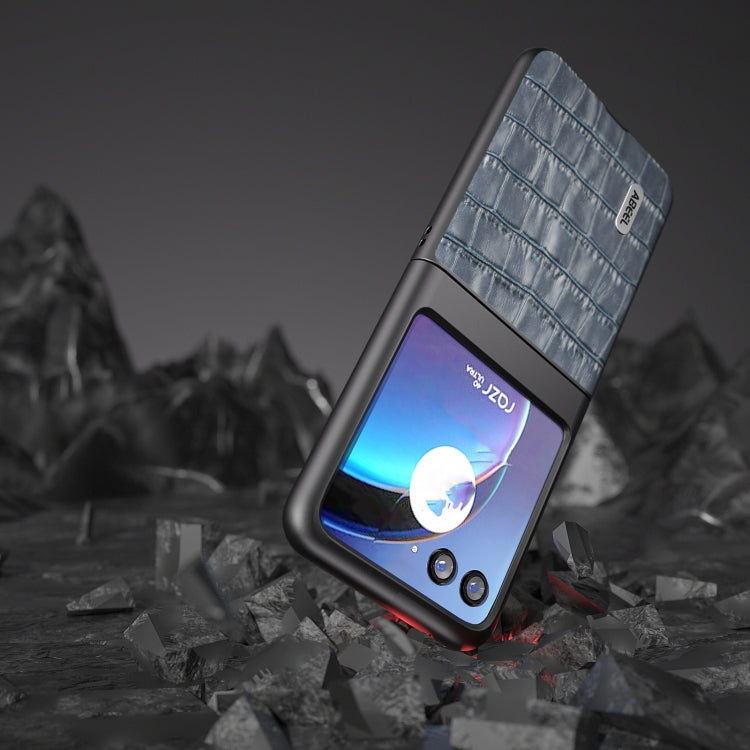 For Motorola Razr 40 Ultra ABEEL Crocodile Texture Genuine Leather Phone Case(Blue)