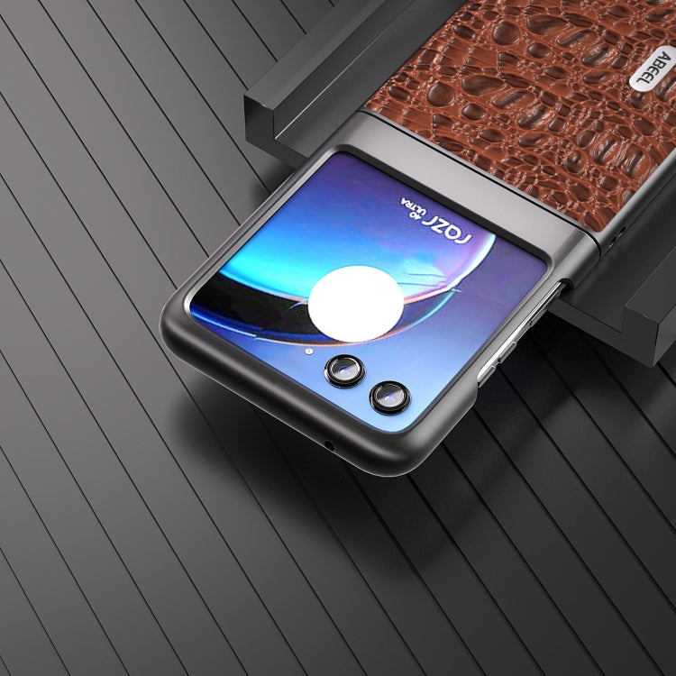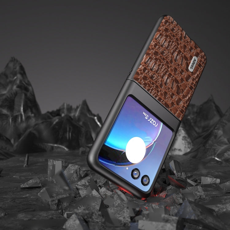 For Motorola Razr 40 Ultra ABEEL Genuine Leather Canopy Black Edge Phone Case(Brown)