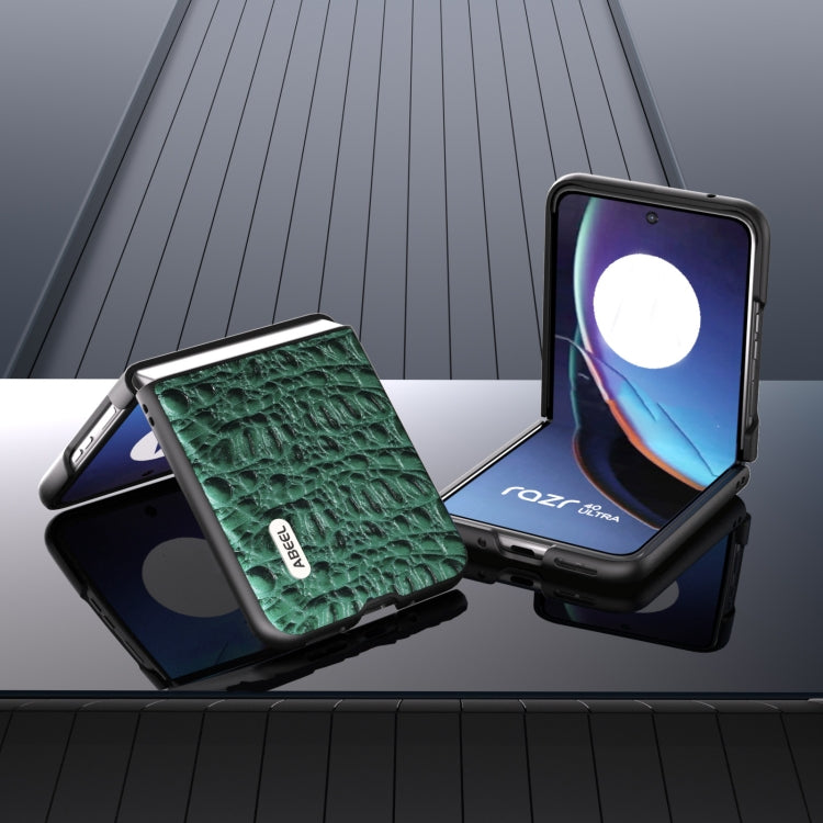 For Motorola Razr 40 Ultra ABEEL Genuine Leather Canopy Black Edge Phone Case(Green)