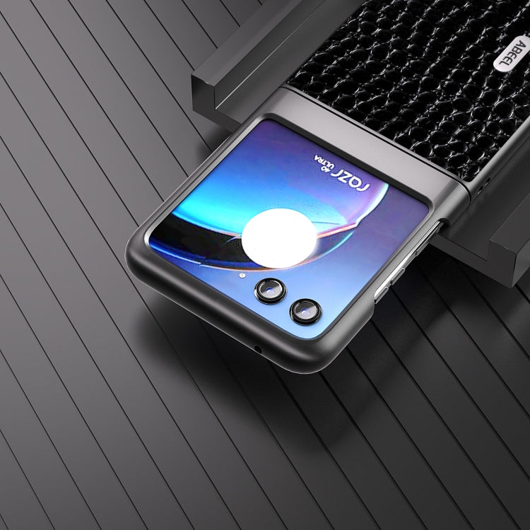 For Motorola Razr 40 Ultra ABEEL Genuine Leather Crocodile Pattern Black Edge Phone Case(Black)