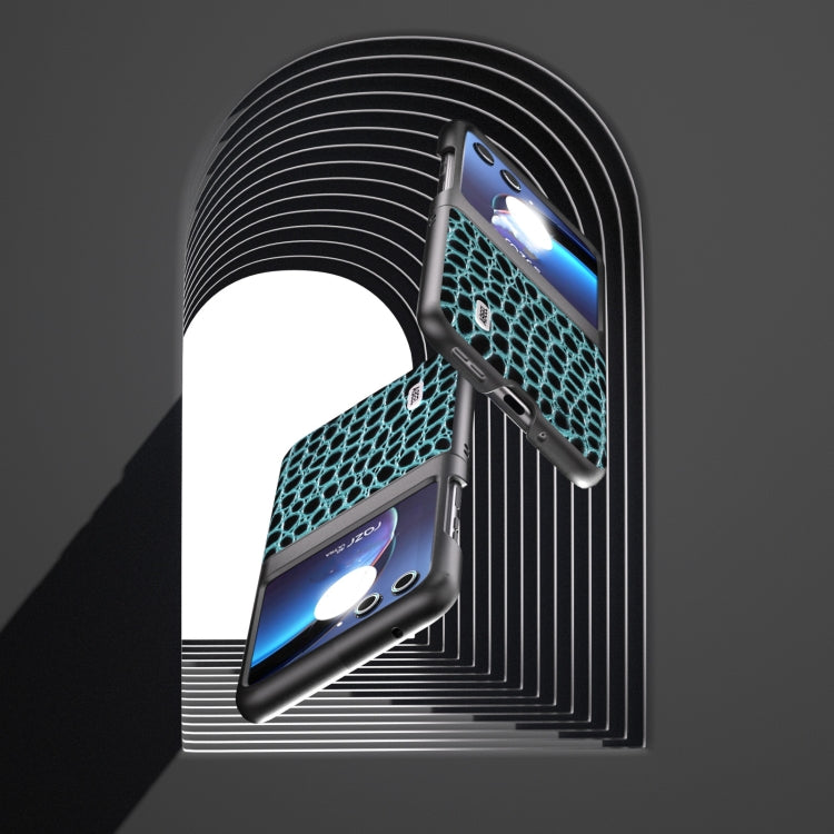 For Motorola Razr 40 Ultra ABEEL Genuine Leather Crocodile Pattern Black Edge Phone Case(Blue)
