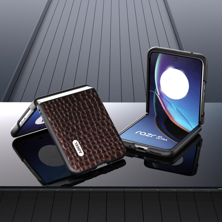 For Motorola Razr 40 Ultra ABEEL Genuine Leather Crocodile Pattern Black Edge Phone Case(Coffee)