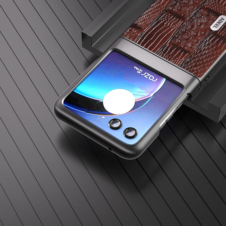 For Motorola Razr 40 Ultra ABEEL Genuine Leather Mahjong Pattern Black Edge Phone Case(Brown)