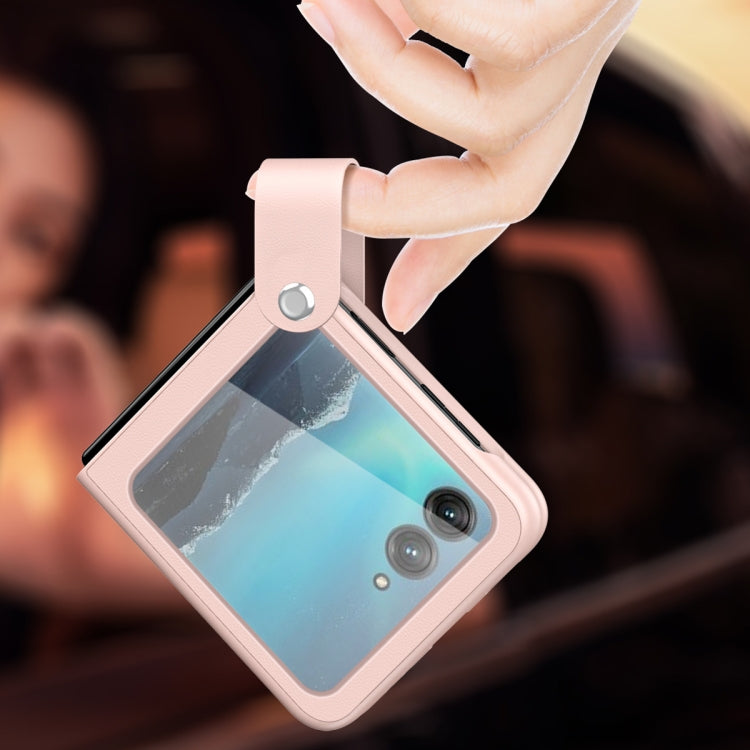For Motorola Razr 40 Ultra Hand Strap Type Leather Phone Case(Pink)
