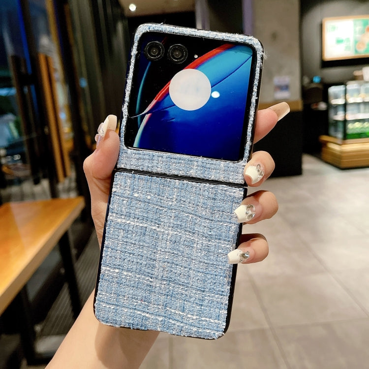 For Motorola Razr 40 Ultra Plaid Fabric PC Protective Phone Case(Blue)