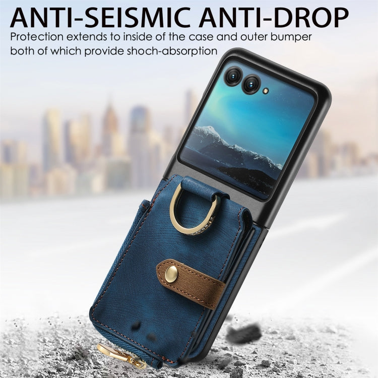 For Motorola Razr 40 Ultra Retro Skin-feel Ring Multi-card Wallet Phone Case(Blue)
