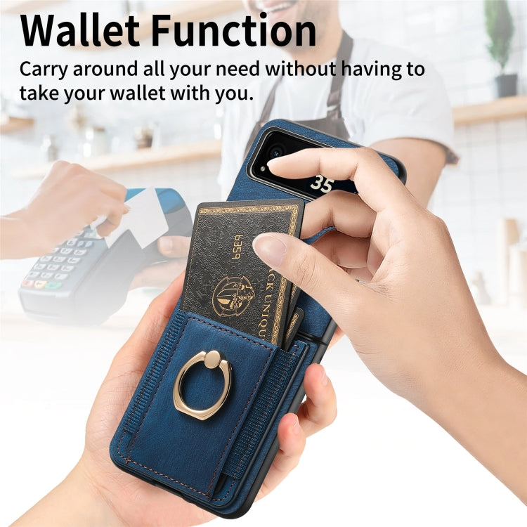 For Motorola Razr 40 Ultra Retro Skin-feel Ring Multi-card Wallet Phone Case(Blue)