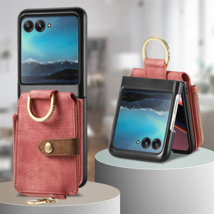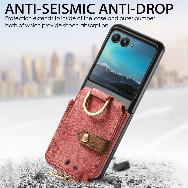 For Motorola Razr 40 Ultra Retro Skin-feel Ring Multi-card Wallet Phone Case(Pink)