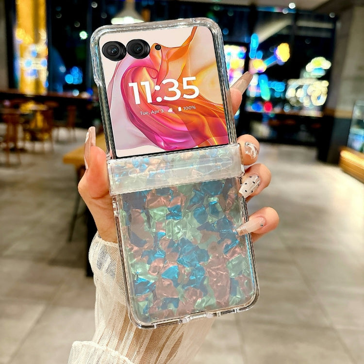 For Motorola Razr 40 Ultra Three-piece Set Pearlescent Shell Texture Phone Case(Beige)