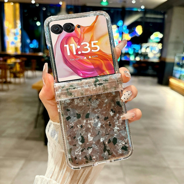 For Motorola Razr 40 Ultra Three-piece Set Pearlescent Shell Texture Phone Case(Pink Green)